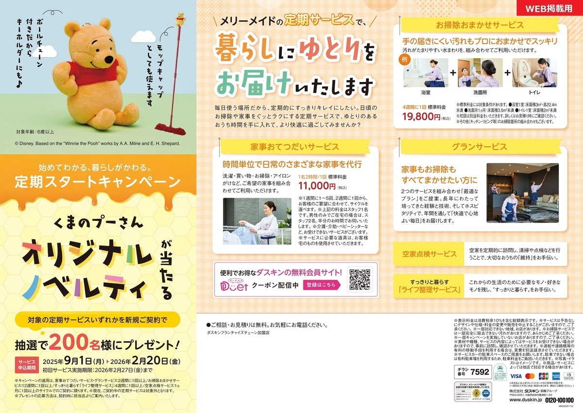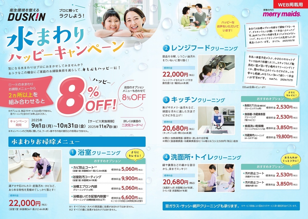 ダスキンのマット、モップなどお掃除用品のレンタルと販売、天然水の宅配など暮らしを快適にする様々な商品もご提供しています。