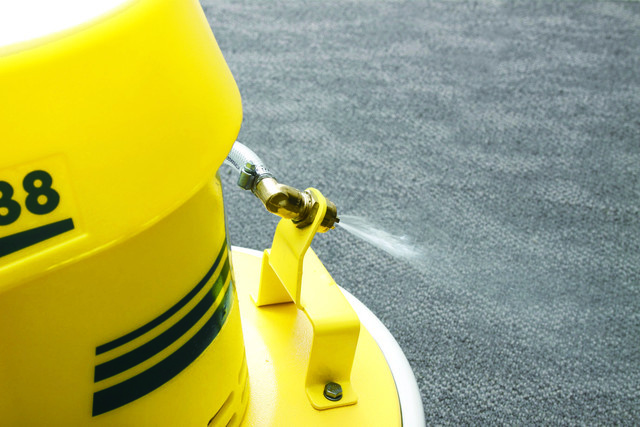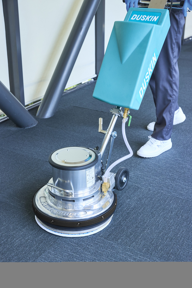 環境にやさしい中性の洗剤を散布し、マイクロファイバー製ディスクでパイルにもやさしく汚れを回収します。